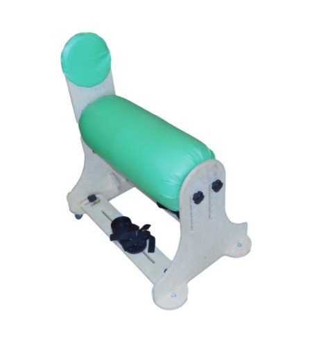 Сидение опоры выполнено в виде абдукционного валика, регулируемого по высоте и углу наклона. Валик крепится к двум вертикальным стойкам при помощи винтов-барашков с пластиковой рукояткой. Вертикальные стойки оборудованы самоориентирующимися колесами со стояночным тормозом. Одна из вертикальных стоек оборудована съемной подушкой для спины. На вертикальных стойках установлены съемные подножки для крепления стоп с возможностью независимой регулировки "влево-вправо". На съемных подножках располагаются съемные пластиковые крепления для ступней типа «сандалии», с задними упорами и крепежными ремешками. Крепления для ступней независимо друг от друга регулируются по плоскости подножки "вперед-назад" с возможностью закрепления в выбранном положении.