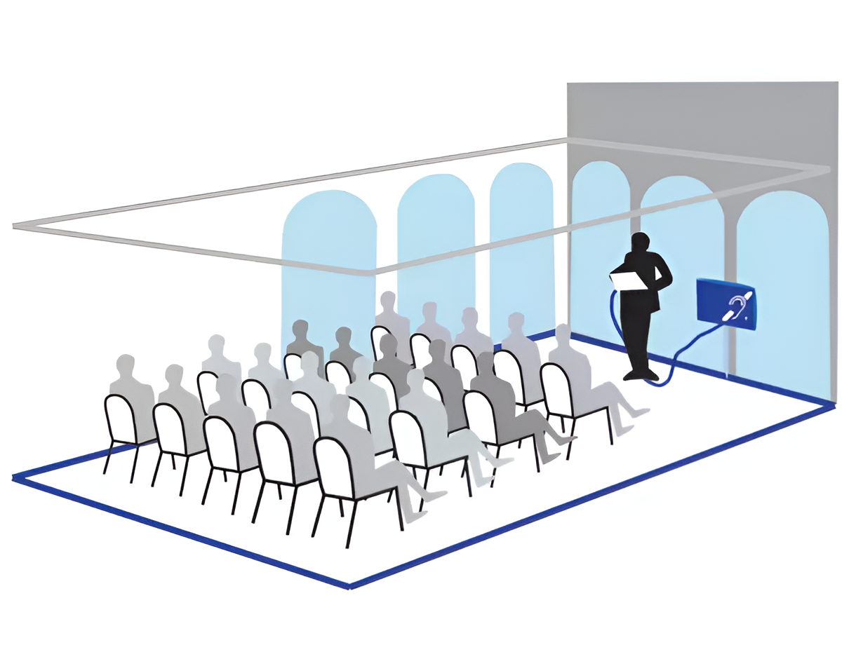 Стационарная индукционная петля может быть подключена к системам оповещения, громкой связи и другим источникам сигнала.