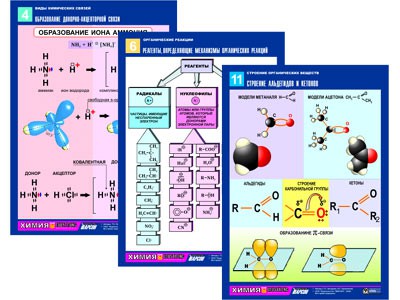 Комплектность: "Распространенность химических элементов", "Содержание химических элементов в природе и организме человека", "Структурные единицы атома. Изотопы. Виды радиоактивного излучения", "Взаимосвязь круговоротов кислорода и углерода", "Кислотно-основные свойства оксидов в зависимости от положения элементов в Периодической системе", "Зависимость свойств веществ от вида химической связи", "Типы кристаллических решеток простых веществ", "Валентность и степень окисления", "Составление формул по валентности", "Генетическая связь классов неорганических веществ", "Растворимость кислот, оснований и солей в воде", "Общие свойства металлов".